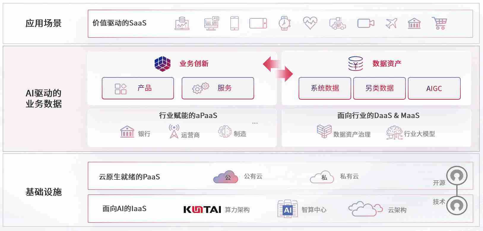 数字时代,,围绕企业数字化转型的关键要素,,亚星代理数码开创性的提出数云融合战略和技术体系框架,,,着力在云原生、、数字原生、、、、AI原生和信创产业上架构产品和服务能力,,,,为处在不同数字化转型阶段的快消零售、、、汽车、、金融、、、、医疗、、、、政企、、、教育、、、、运营商等行业客户提供泛在的敏捷IT能力和融合的数据驱动能力,,构建跨界融合创新的数字业务场景和新业务模式,,助力企业级客户建立面向未来的核心能力和竞争优势,,全面推动社会的数字化、、、智能化转型升级。。。。